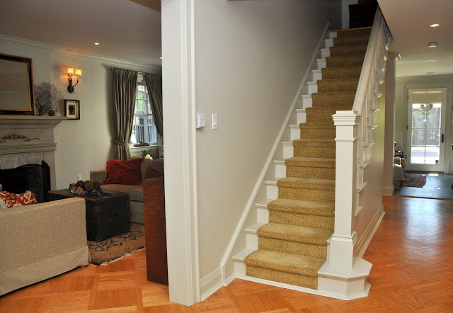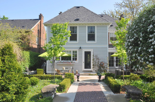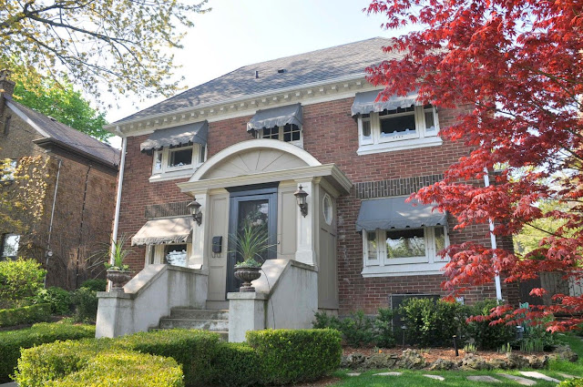 I remember looking at this house when we were selling our second home about 4 years ago. It sold for $399,000 back then. It was always a nice house but the current owners have upped the ante big time. This stunning Georgian has undergone an extensive renovation including a 2-storey addition at the rear, lush landscaping, a brand new kitchen, updated bathrooms, and an exterior face lift with awnings and the addition of a vestibule and curvy concrete stairway. I'm pretty sure this house has a huge unfinished attic space too if my memory serves me correct. The property also has the bonus feature of a long side driveway plus garage off of Hess St South. This is one of 3 twin houses built on what was the original lot for the large white Queen Anne Victorian on the southeast corner of Queen & Aberdeen.